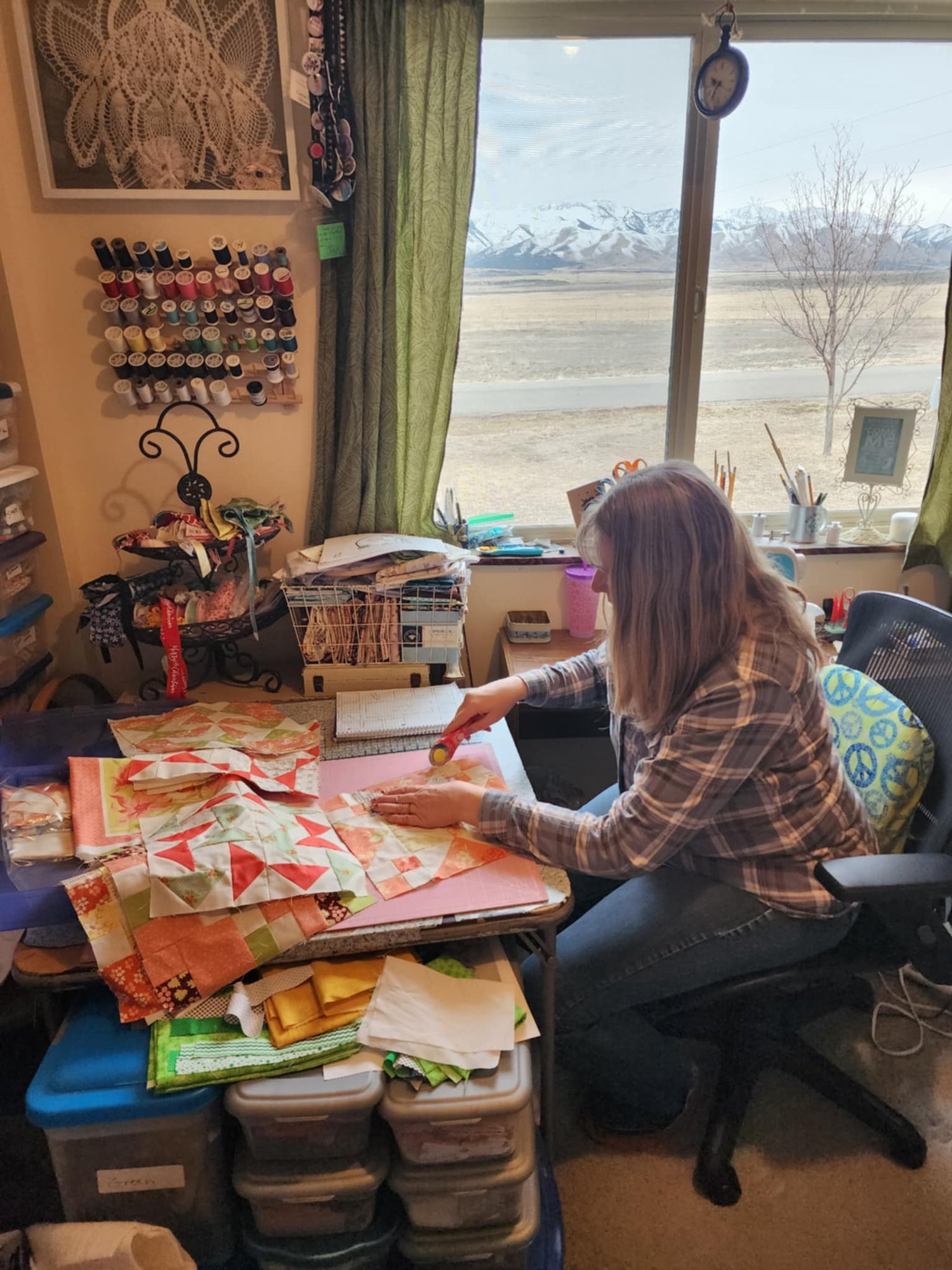 Carrie has been sewing since she was a young girl. Her mother taught her to sew doll clothes and helped her sew her first quilt at age 12. She learned hand quilting sitting around a quilt in the front room with family and friends at a quilting bee. She loved the hand work and started embroidering dish towels for her hope chest. Carrie also loves the outdoors, gardening, canning, genealogy and reading. She enjoys sharing her love of creating with her family. Carrie and her husband,Rick, have 5 children Carson and his wife Marie, Cheyenne, Melinda, Adelaide and Orrin. They were raised on a farm with lots of fun adventures as they learned life lessons.