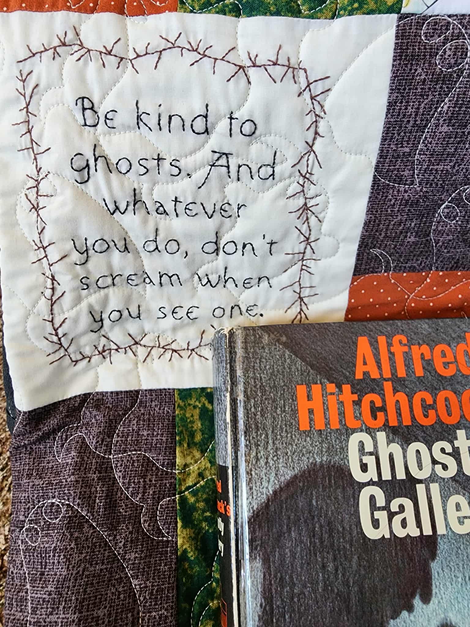 A Fan of Alfred Hitchcock, this spooky quilts for you! Comes with the Book "Ghostly Gallery"