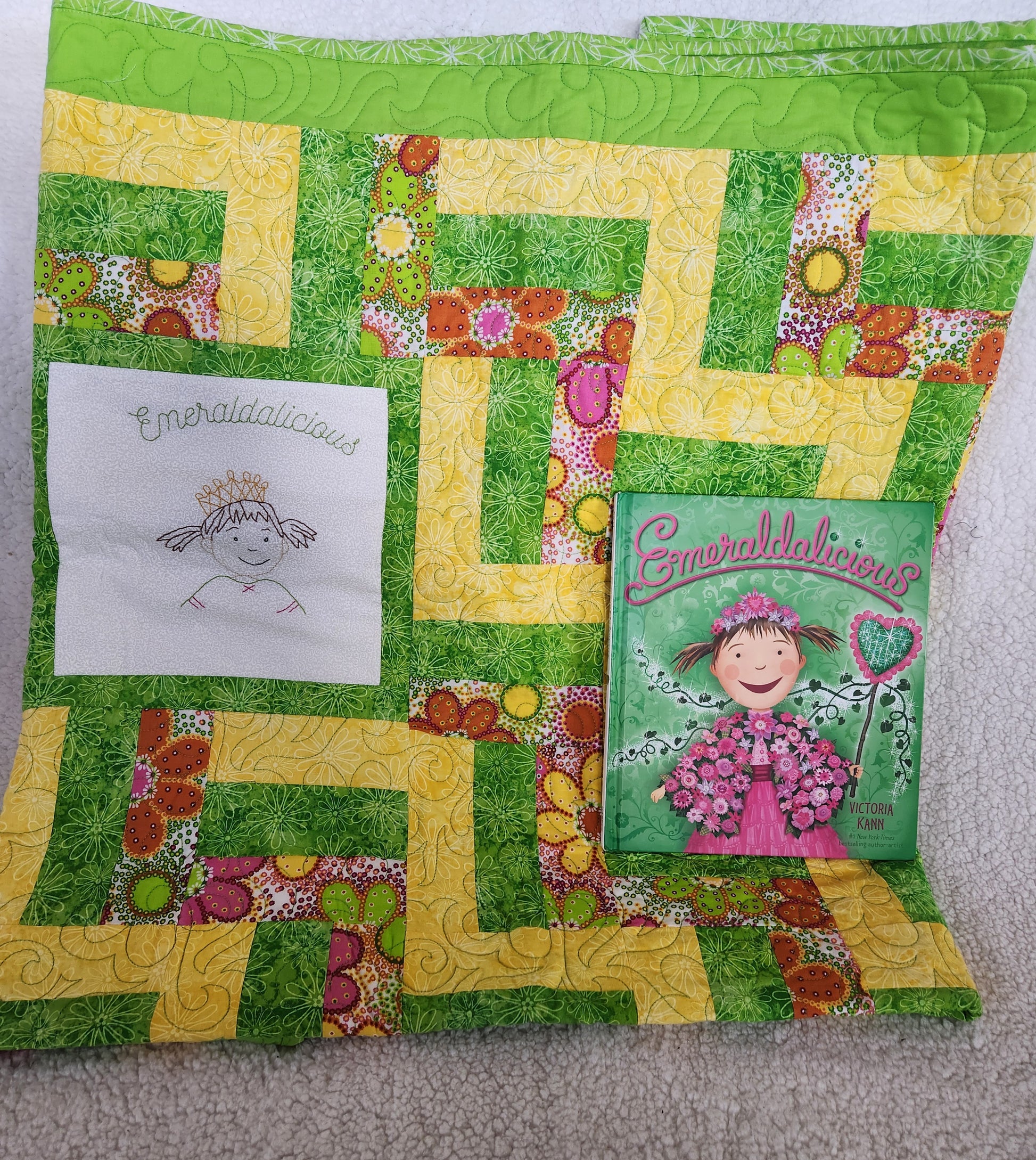 Any little one who loves Emeraldalious and green will love to snuggle under this cozy Emeraldalious quilt and read this book. This quilt comes with the book "Emeraldalious ". This would make any little girl an amazing gift.